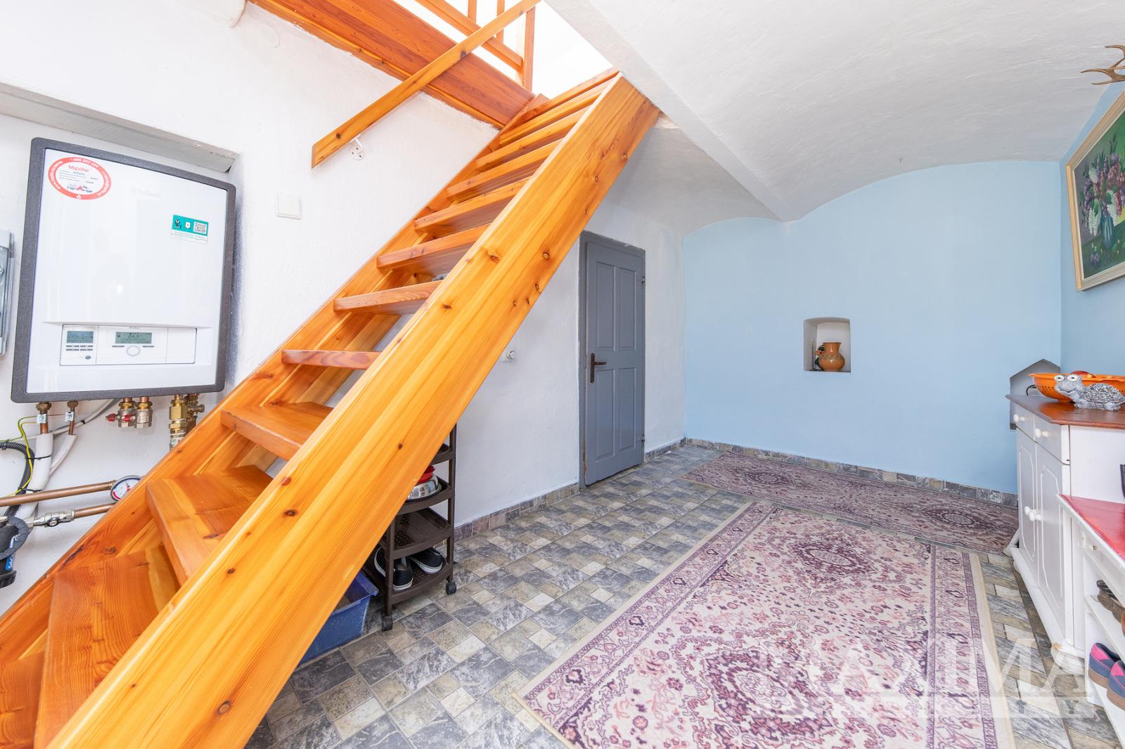 Samotný dům je v pěkném udržovaném stavu, s praktickou dispozicí 3+1. Vytápění je řešeno tepelným čerpadlem nebo krbovými kamny s rozvodem tepla do všech pokojů, což zajišťuje příjemnou atmosféru i úsporný provoz. Rozvody elektřiny i topení jsou v mědi. Koupelna prošla rekonstrukcí v roce 2025. Nemovitost je napojena na vodovod i kanalizaci. Ohřev TUV je zajištěn fotovoltaikou. V přízemí domu je obývací pokoj, kuchyně, WC a koupelna se sprchovým koutem. V půdním prostoru se nachází 2 pokoje