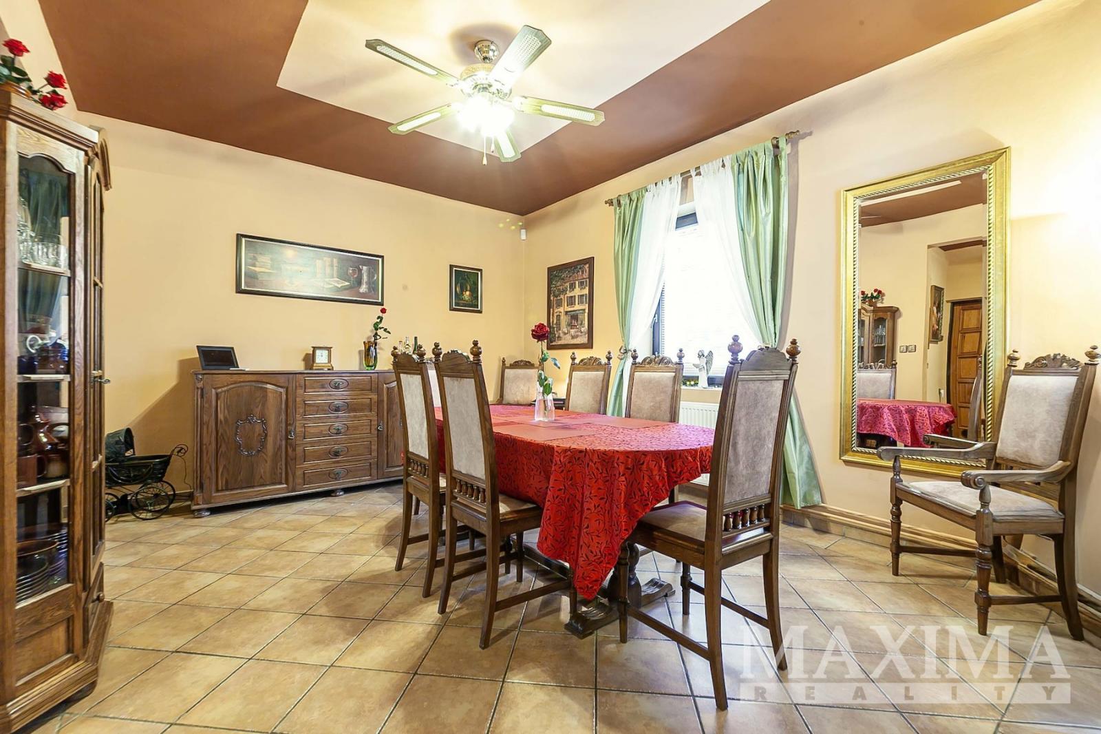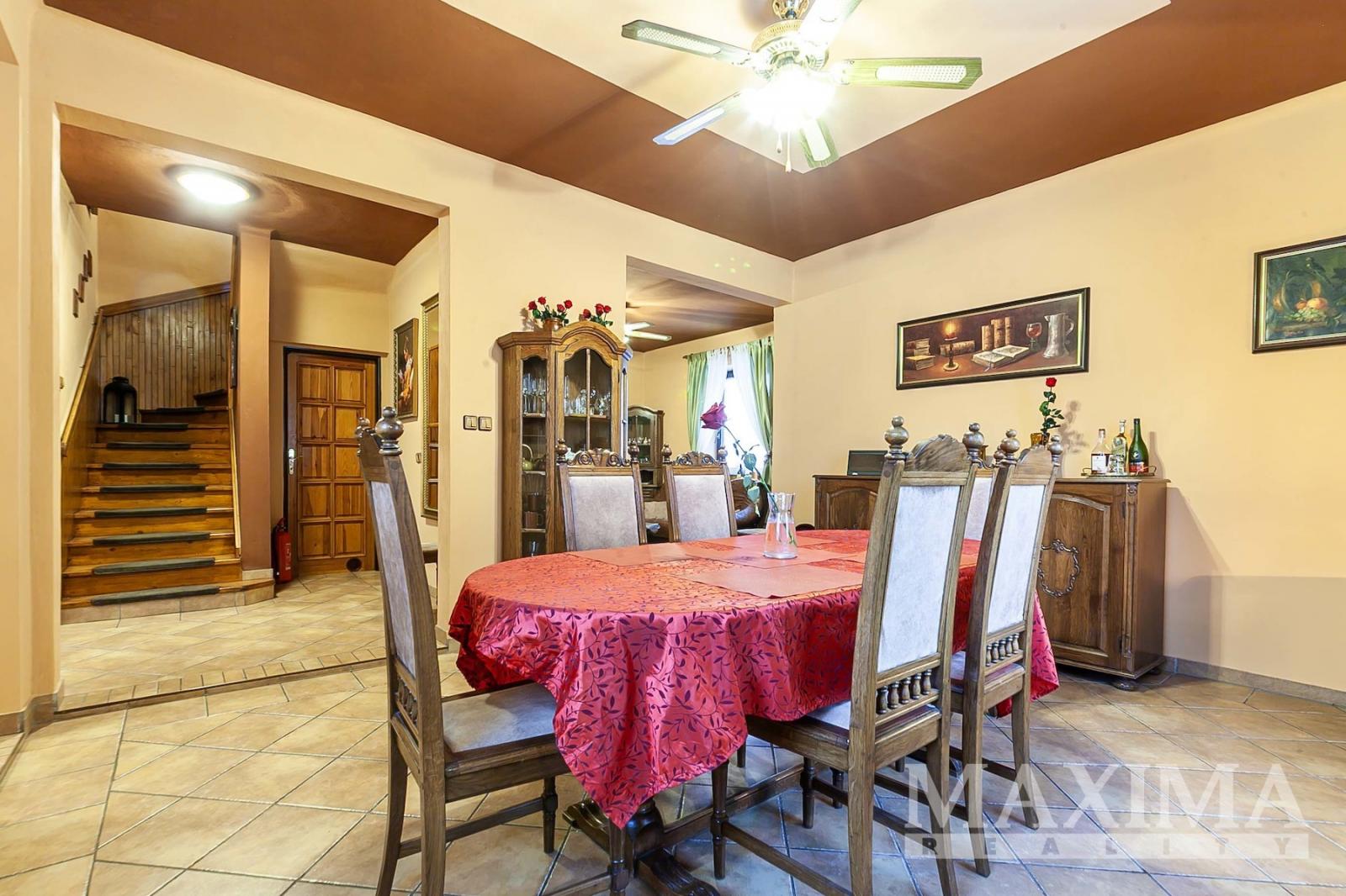 Dispozice domu (12+1) nabízí řadu ložnic, pokojů a místností, tři koupelny, čtyři WC, zimní zahradu, sklep a garáž.