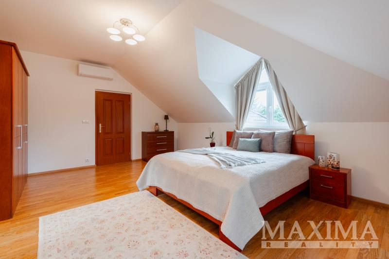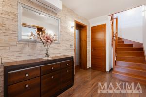 Dvoupodlažní dům z roku 2007 o nadstandardní podlahové ploše 274 m2 je situován na rovinném pozemku o rozloze 1.202 m2 a splňuje parametry klidného rodinného bydlení. Při zařizování domu byl kladen důraz na kvalitní materiály a prvky, je zde moderní kuchyňská linka s vestavěnými spotřebiči, kvalitní dřevěné podlahy, v obytných místnostech je klimatizace. V přízemí je podlahové vytápění, v prvním patře jsou pak instalovány radiátory.