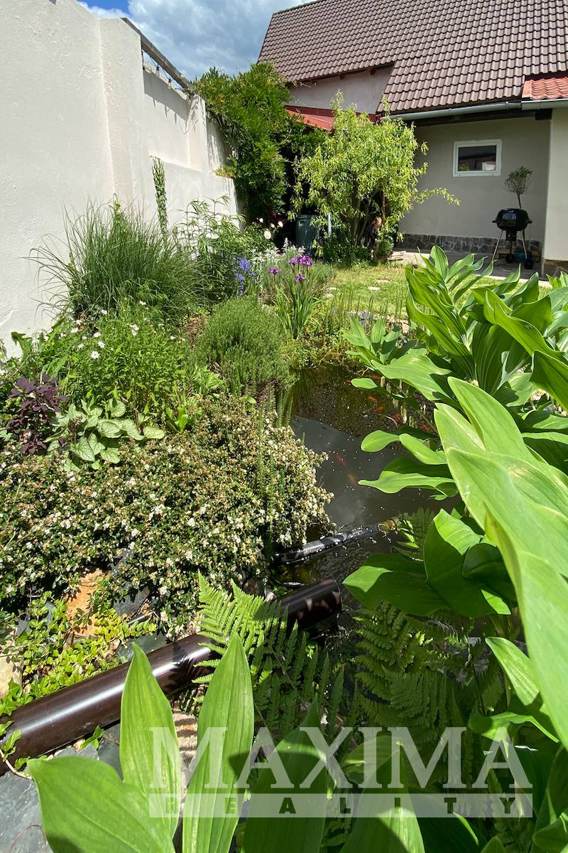 Součástí nabídky je také zrenovovaná stodola zachovávající původní styl a udržovaná okrasná zahrada s jezírkem.