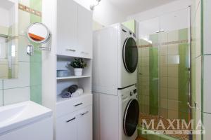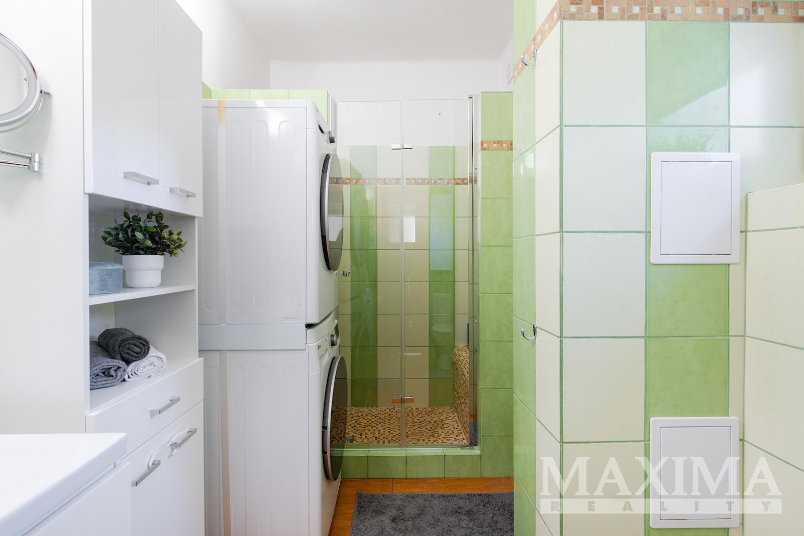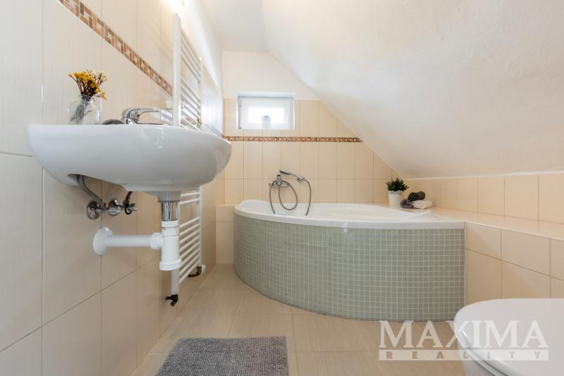 Dvě plně vybavené koupelny: jedna s rohovou vanou pro odpočinek, druhá s praktickým sprchovým koutem.