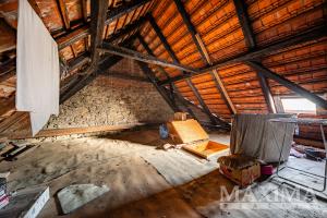 V ceně je zohledněn půdní prostor s původním krovem, který byl přibližně před 60 lety částečně zasažen požárem, následně vyztužen trámy a je určen k rekonstrukci.