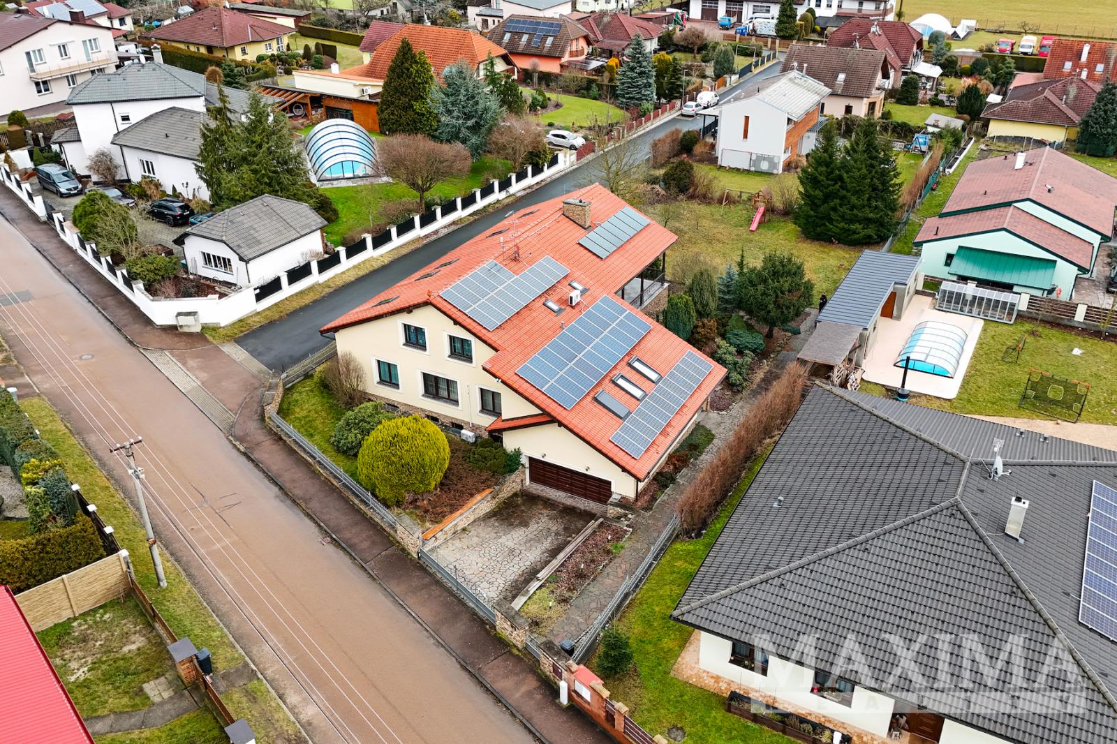 Vytápění domu je zajištěné novým kondenzačním kotlem a podpořeno klimatizačnímu jednotkami. V části domu je instalované podlahové vytápění. Zásobování elektřinou zabezpečí fotovoltaika.