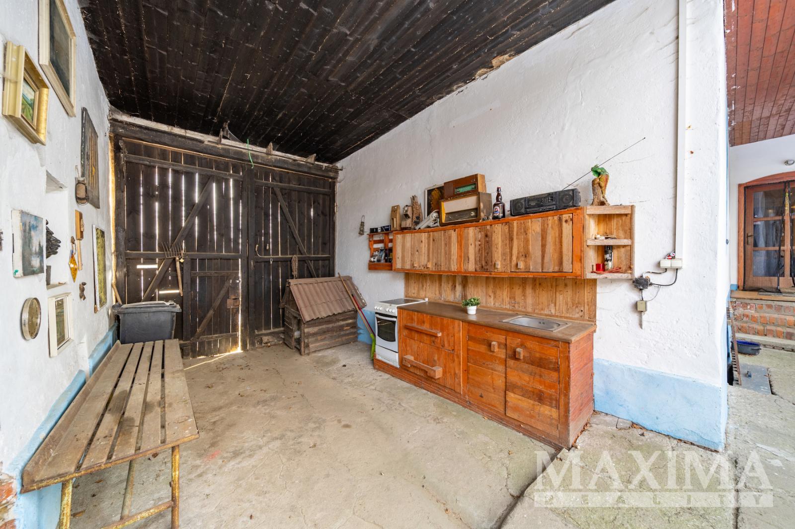 K nemovitosti náleží dvě prostorné stodoly ve velmi dobrém technickém stavu, které poskytují dostatek prostoru pro parkování, skladování, dílnu či další využití dle potřeb nového majitele. Parkování je možné jak ve stodole, tak na zastřešeném parkovacím místě. Dům má číslo popisné a je plně vhodný k trvalému bydlení.
