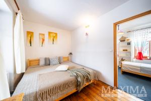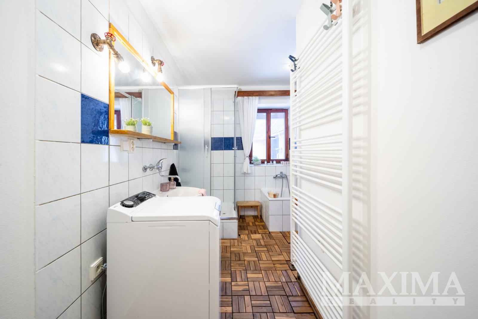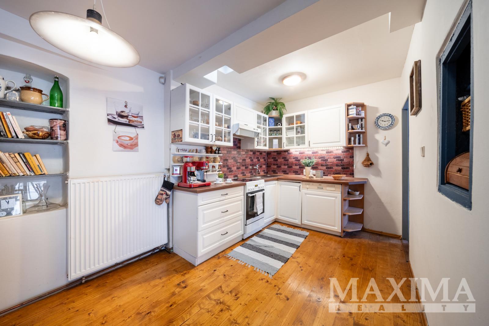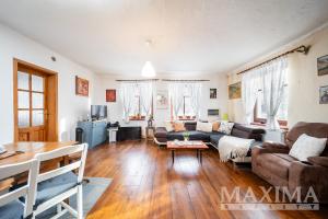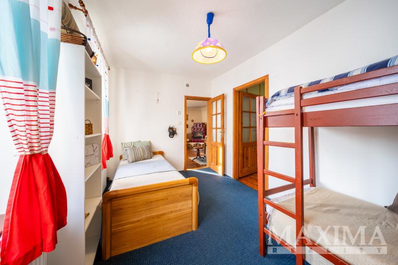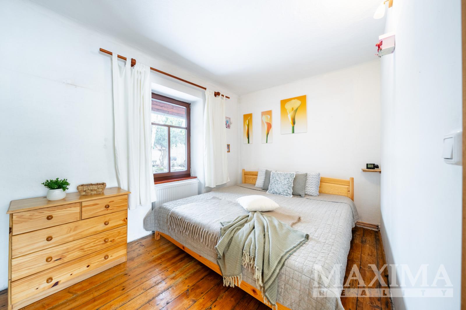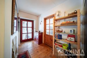 Dům z roku 1945 o dispozici 3+1 nabízí užitnou plochu přibližně 80-85 m2 a je zařízen v útulném, rustikálním stylu. Dominantou interiéru je světlý a prostorný obývací pokoj s kachlovými kamny a posezením, který tvoří přirozené srdce domu. Na něj navazuje kuchyně dále ložnice a pokoj vhodný jako pokoj pro hosty. Celý interiér působí velmi harmonicky a klidně, s důrazem na pohodlí a domácí atmosféru.