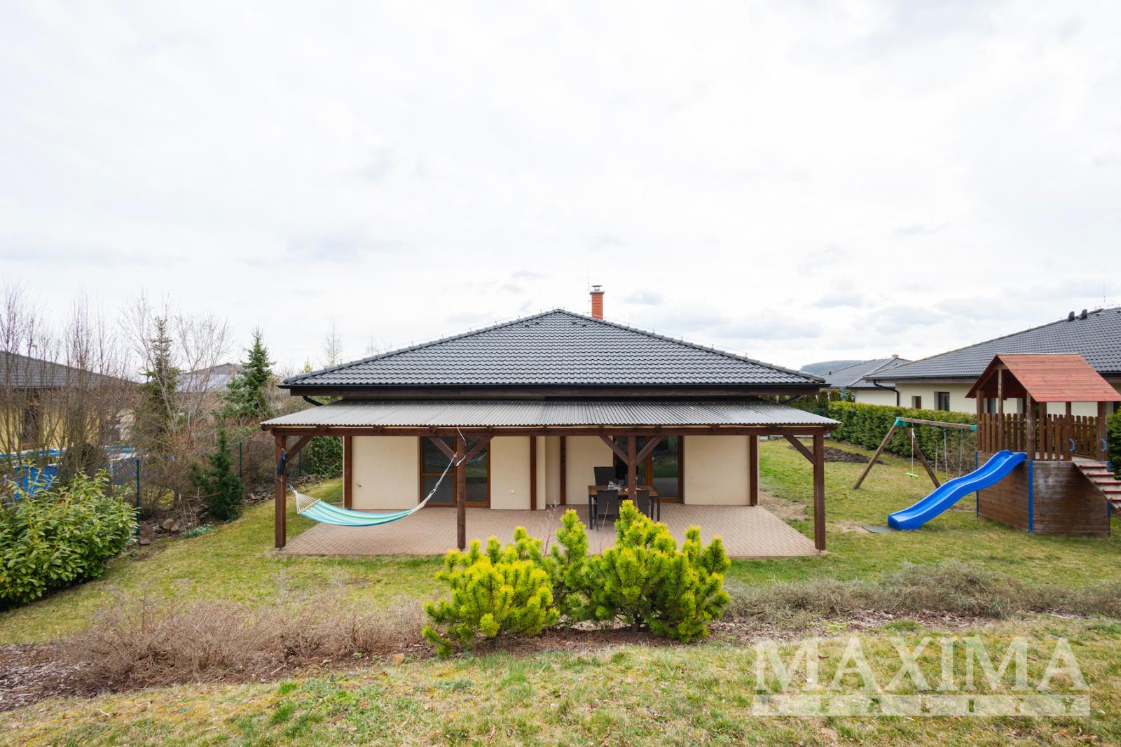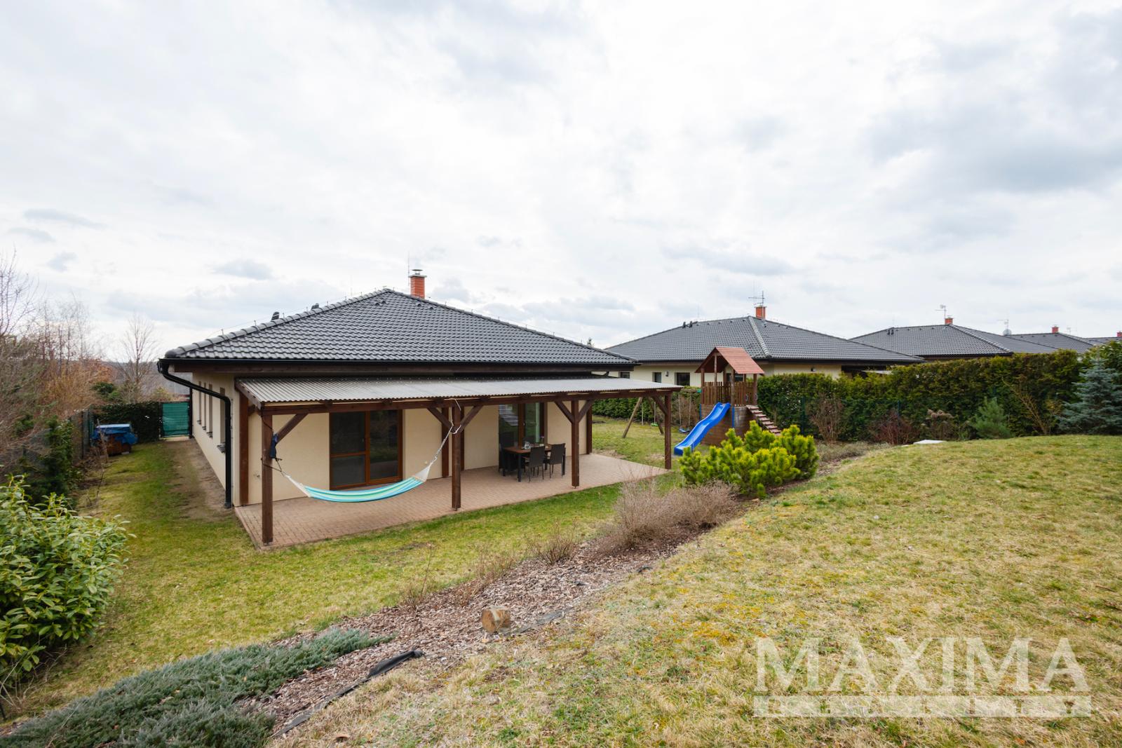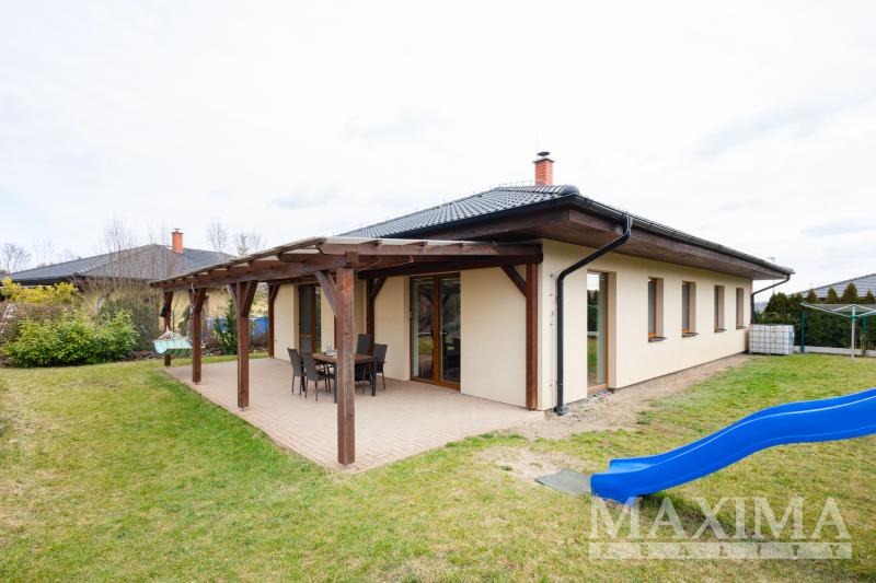 Jednopodlažní zděný bungalov je situován na západně orientovaném pozemku o rozloze 942 m2 a nabízí užitnou plochu 127 m2. Dům z roku 2014 má zateplené obvodové stěny polystyrenem, valbová střecha je zateplena vatou, střešní krytina je Bramac. V podkroví je vybudována pochozí půda o výměře cca 30 m2, sloužící jako úložný prostor. Plastová okna jsou s izolačním trojsklem, vchodové dveře bezpečnostní.