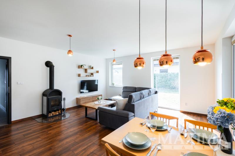 Jedná se o klidnou rezidenční lokalitu jihozápadním směrem od Prahy s výbornou dopravní dostupností do hlavního města, kousek od domu je také zastávka linkového autobusu, za 30 minut jste na Smíchovském nádraží. Do 5 minut jste pak na D4, do centra Prahy dojedete za 35 minut. Dům se nachází v klidné jednosměrné ulici, v docházkové vzdálenosti na náměstí, do školy i školky. V místě jsou také obchody a restaurace, dětská hřiště a sportoviště. Mníšek je obklopený krásnými lesy, do přírody to tak budete mít jen pár kroků.