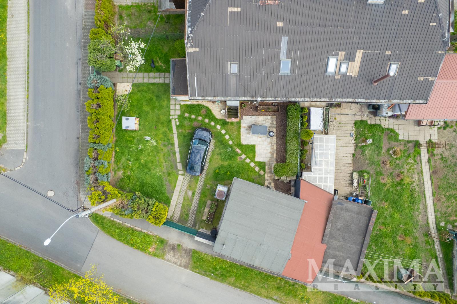 Dům je patrový, zděný a dispozičně prakticky řešený. V rámci užívání je k dispozici obytná část 3+1, sklep o velikosti cca 9 m2 a venkovní prostory včetně zahrady. Výhodou je také možnost parkování přímo na pozemku a velká garáž. Další potenciál nabízí půdní prostor, který lze do budoucna upravit na další obytné místnosti dle vlastních představ.