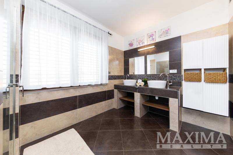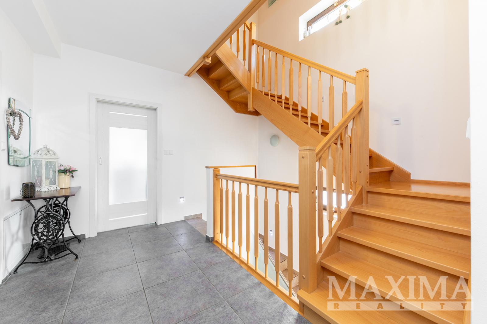 Dům je rozdělen do tří podlaží a nabízí celkem 6 obytných místností, 3 koupelny a 4 WC.