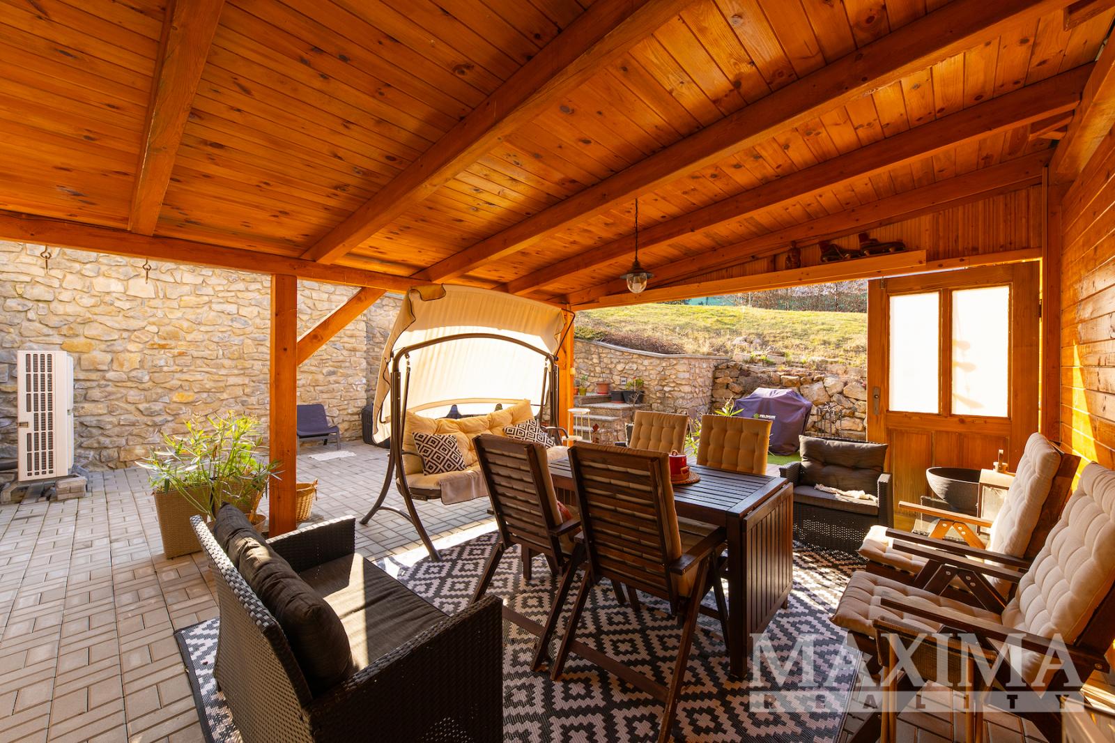 Součástí domu je udržovaná zahrada a také opticky uzavřený venkovní prostor orientovaný směrem do zahrady, který nabízí příjemné soukromí, venkovní posezení a funguje jako přirozené rozšíření obytného prostoru domu. Toto zázemí dále doplňuje samostatná letní kuchyně se vstupem ze dvora, která tak ještě zvyšuje jeho využitelnost.