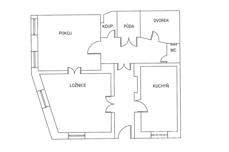 Dispozice přízemí o podlahové ploše 76 m2 nabízí vše potřebné pro komfortní život. Srdcem domu je prostorná kuchyně, na kterou navazují dva světlé pokoje - ložnice a obývací pokoj s původními dřevěnými podlahami. Praktické zázemí v podobě koupelny a samostatného WC doplňuje centrální chodba, ze které můžete vyjít přímo na dlážděný dvorek. Právě zde, v naprostém soukromí, najdete ideální prostor pro klidné posezení. Atmosféru dotváří romantická předzahrádka plná květin, která dům odděluje od klidné ulice.