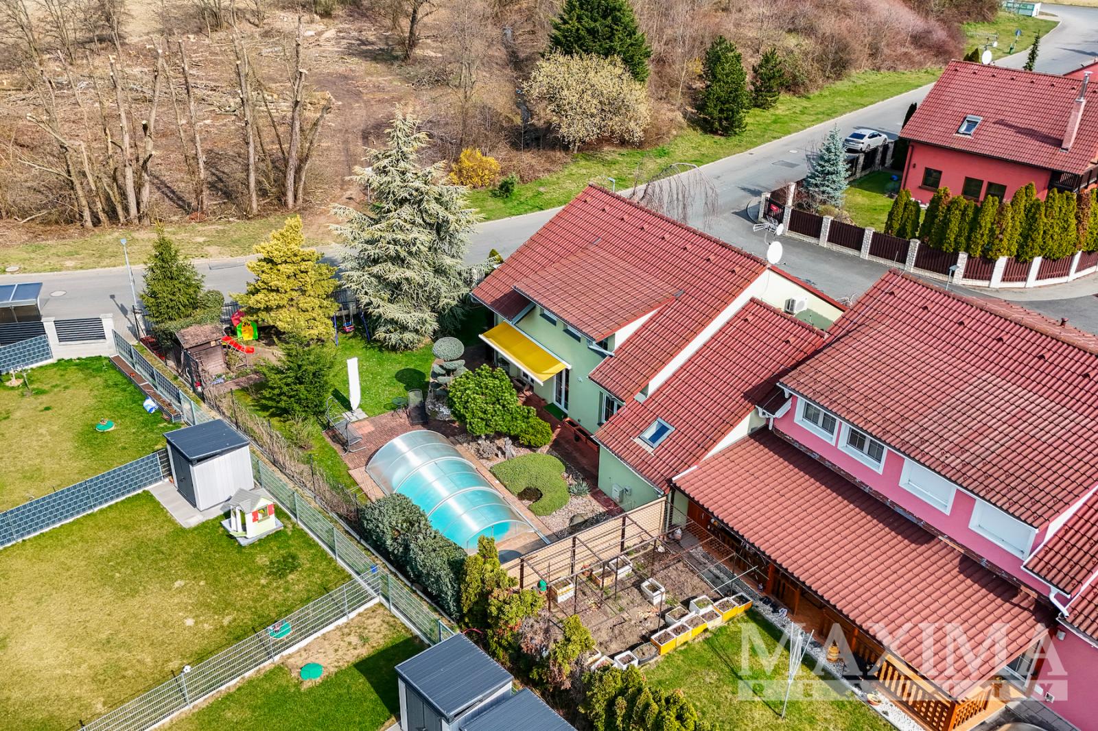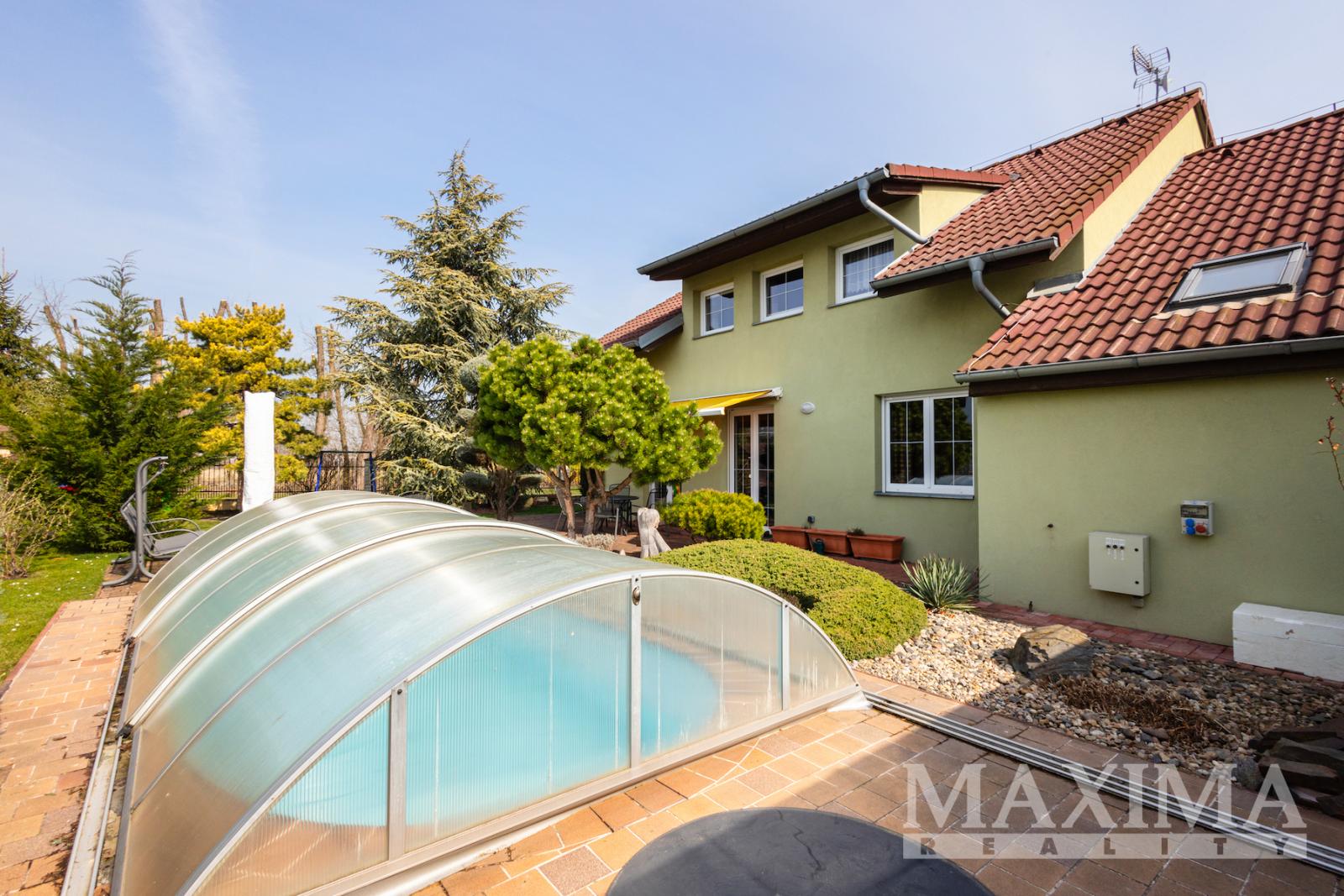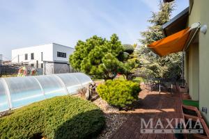 profesionálně ztvárněná zahrada s bazénem (6x3 m) vyhřívaným tepelným čerpadlem, terasou s výsuvnou markýzou, zahradním domkem, ke kterému je přivedena elektřina Všechny IS, ÚT plyn, internet (k dispozici i optický kabel). Nemovitost je nabízena výhradně naší kanceláří.