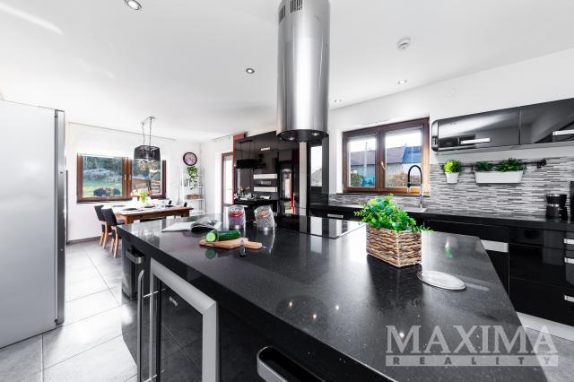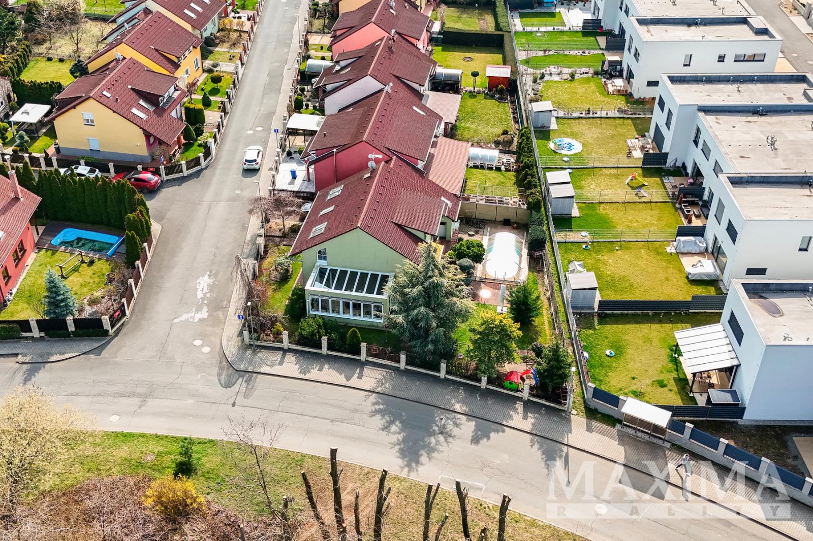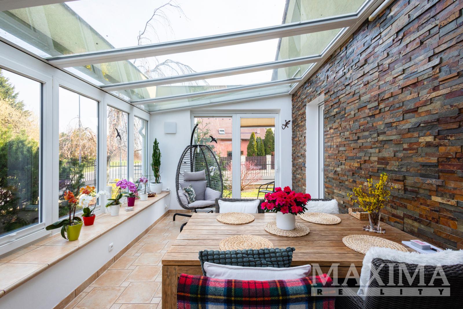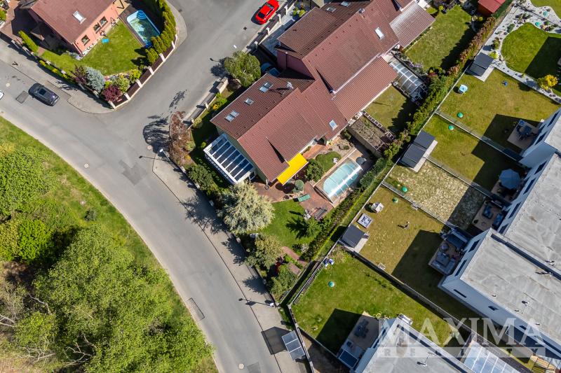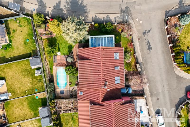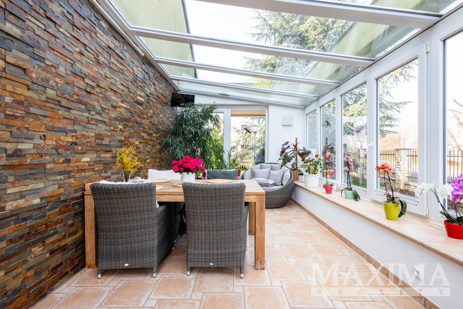 Nadstandardní prvky a vybavení: zimní zahrada s podlahovým vytápěním, klimatizace v celém domě, elektricky ovládané předokenní bezpečnostní žaluzie, bezpečnostní folie v místě s manuálním ovládáním žaluzií, alarm atd.