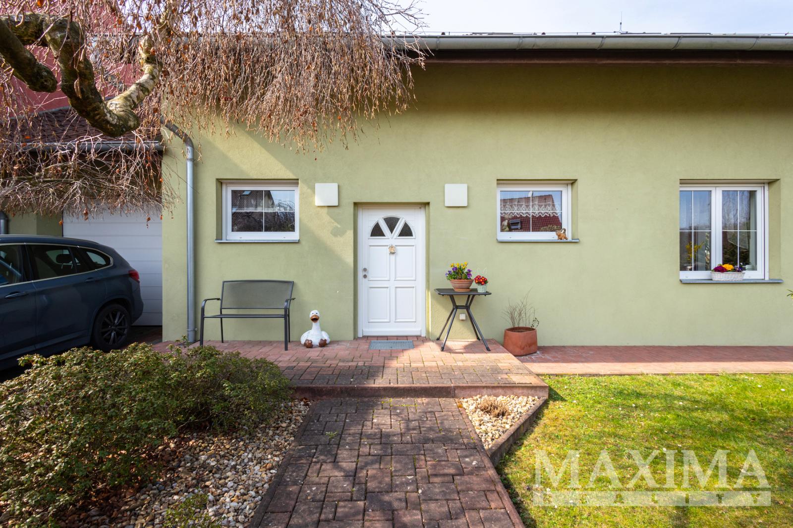 Benefitem je umístění domu na prostorné rohové parcele na kraji klidné obytné zóny s výhledem na remízek, současně v jádru obce, s vybaveností v docházkové vzdálenosti.
