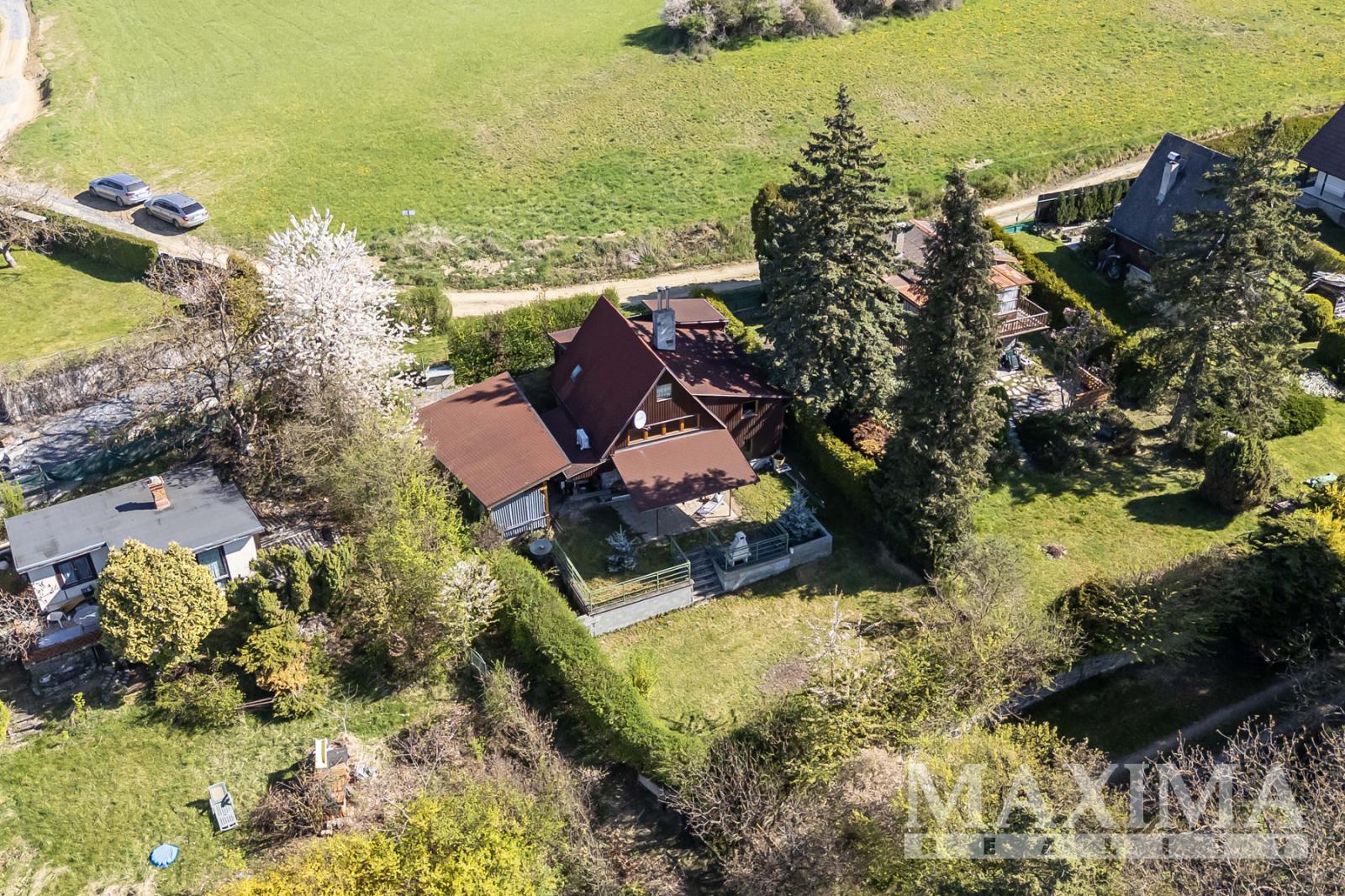 K domu náleží zahrada, která poskytuje dostatek soukromí a klidu pro relaxaci. Dostatečně velký přístřešek k posezení s krbem, dále velkorysý přístřešek (25m2) na dřevo či jakékoliv jiné využití.