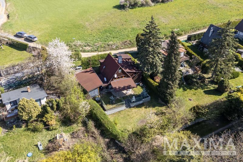 Chata je ve velmi dobrém a udržovaném stavu a je připravena k okamžitému užívání bez nutnosti dalších investic. Dispozičně je řešena jako 4+1, obytná plocha 75m2 + garáž + skladovací prostor a je rozložena do tří pater. S tím, že v 1.PP se nachází bývalá garáž, dnes využívaná jako praktický skladový prostor s technickým zázemím, dále koupelna a další prostorná místnost vhodná pro uskladnění či hobby zázemí.