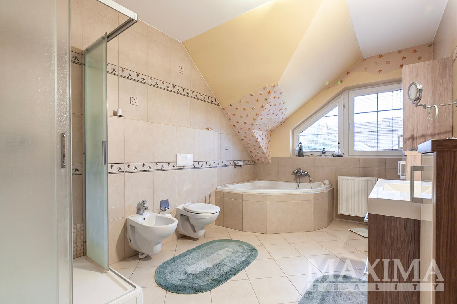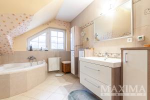Exkluzivní nabídka uživatelsky komfortního bydlení 5+1 se 2 koupelnami, saunou se sprchovým koutem, garáží a dalším zázemím, blízko budoucí stanice M Nové Dvory, již nyní s výbornou dopravní obslužností. Dům z roku 2006 tvoří 3 podlaží, která dále doplňuje podkrovní úložný prostor. 1.PP s denním osvětlením (směrem do zahrady přisvětlení anglickými dvorky, vzhledem k ulici nadzemní podlaží) obsahuje garáž, saunu se sprchou, víceúčelovou místnost (lze využít jako fitness, společenskou místnost atd.), technickou místnost (prádelnu) a šatnu. 1.NP reprezentuje obývací pokoj, provázaný francouzským oknem s terasou s venkovním krbem a okrasnou zahradou, kuchyň s jídelnou, koupelna se sprchou a toaletou, zádveří, chodba a hala se schodištěm. Původní dispoziční řešení tohoto podlaží tvořil obývací pokoj s kuchyňským koutem a pracovna, současní majitelé situovali kuchyň do samostatné místnosti. 2.NP tvoří další 3 pokoje, balkon, prostorná koupelna s vanou i sprchou a hala, ze které je přístup do podkrovního úložného prostoru. V celém domě domě dřevěné podlahy a dveře, vestavěné skříně, pod dlažbou ve společenské místnosti, v prádelně a v koupelně ve 2.NP podlahové topení, vnitřní i venkovní krb, sauna a další nadstandardní vybavení. Benefitem je dostatek úložných prostor. Na pozemku předzahrádka, zpevněná parkovací plocha a okrasná zahrada se vzrostlou zelení, garantující soukromí. Ideální bydlení pro rodinu s aktivním životním stylem. V místě komplexní vybavenost včetně The Prague British School a The English International School, lesopark i Modřanská rokle atd. Hypotéka lze, pomůžeme zajistit optimální profinancování.