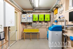 - Suterén (120 m2): Kompletně využité podlaží s garáží, kotelnou a prostornými dílnami - ideální pro podnikání, domácí fitness nebo rozsáhlý sklad.