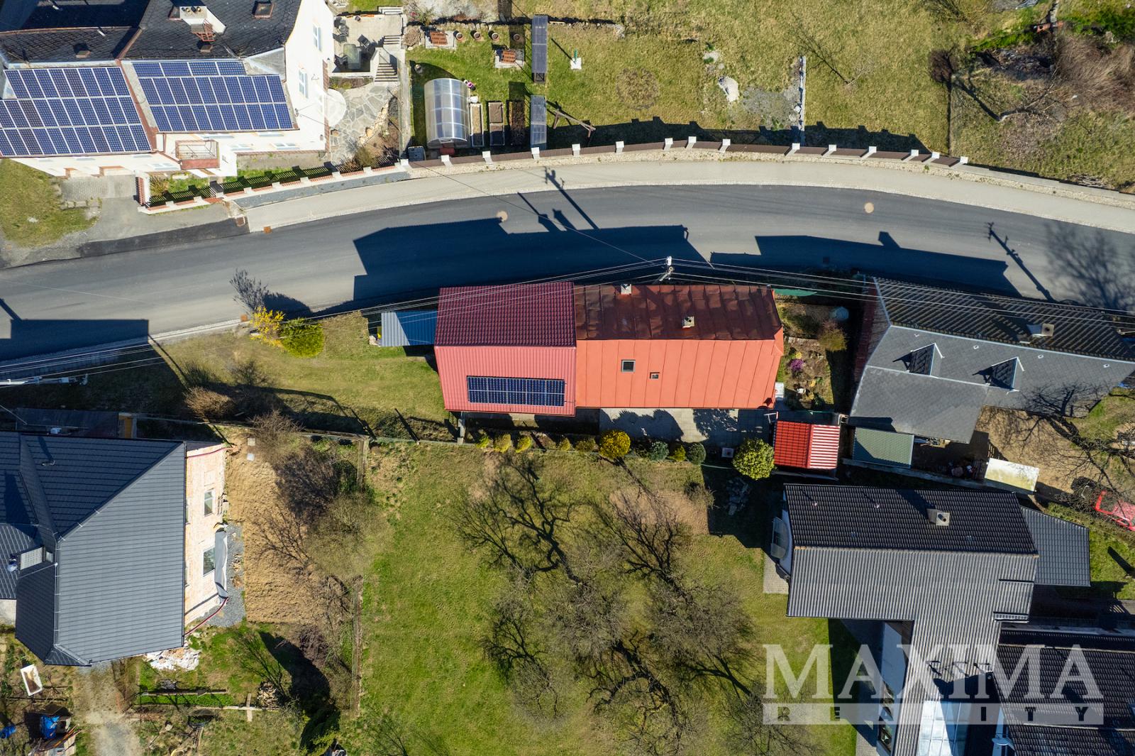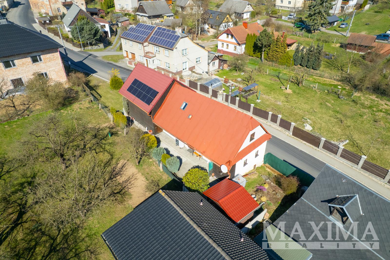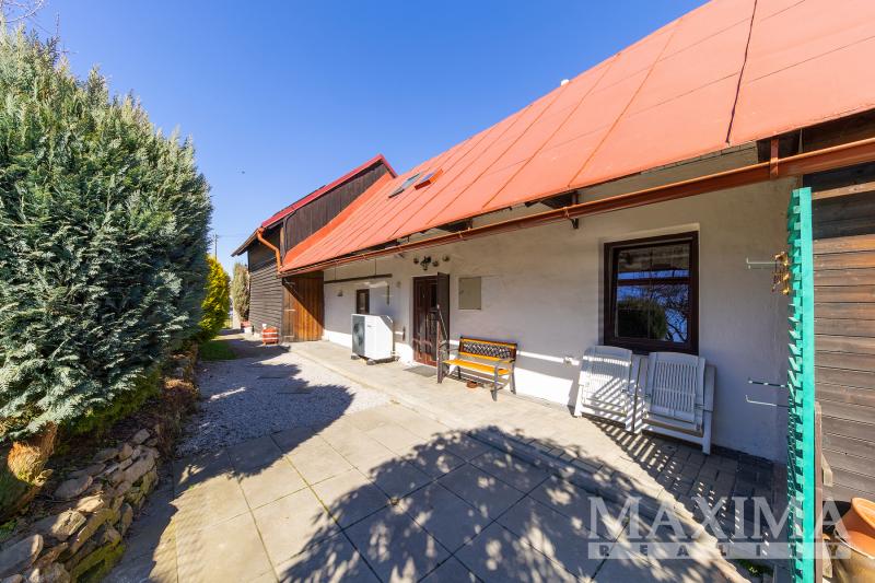 Samotný dům je v pěkném udržovaném stavu, s praktickou dispozicí 3+1. Vytápění je řešeno tepelným čerpadlem nebo krbovými kamny s rozvodem tepla do všech pokojů, což zajišťuje příjemnou atmosféru i úsporný provoz. Rozvody elektřiny i topení jsou v mědi. Koupelna prošla rekonstrukcí v roce 2025. Nemovitost je napojena na vodovod i kanalizaci. Ohřev TUV je zajištěn fotovoltaikou. V přízemí domu je obývací pokoj, kuchyně, WC a koupelna se sprchovým koutem. V půdním prostoru se nachází 2 pokoje