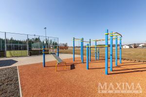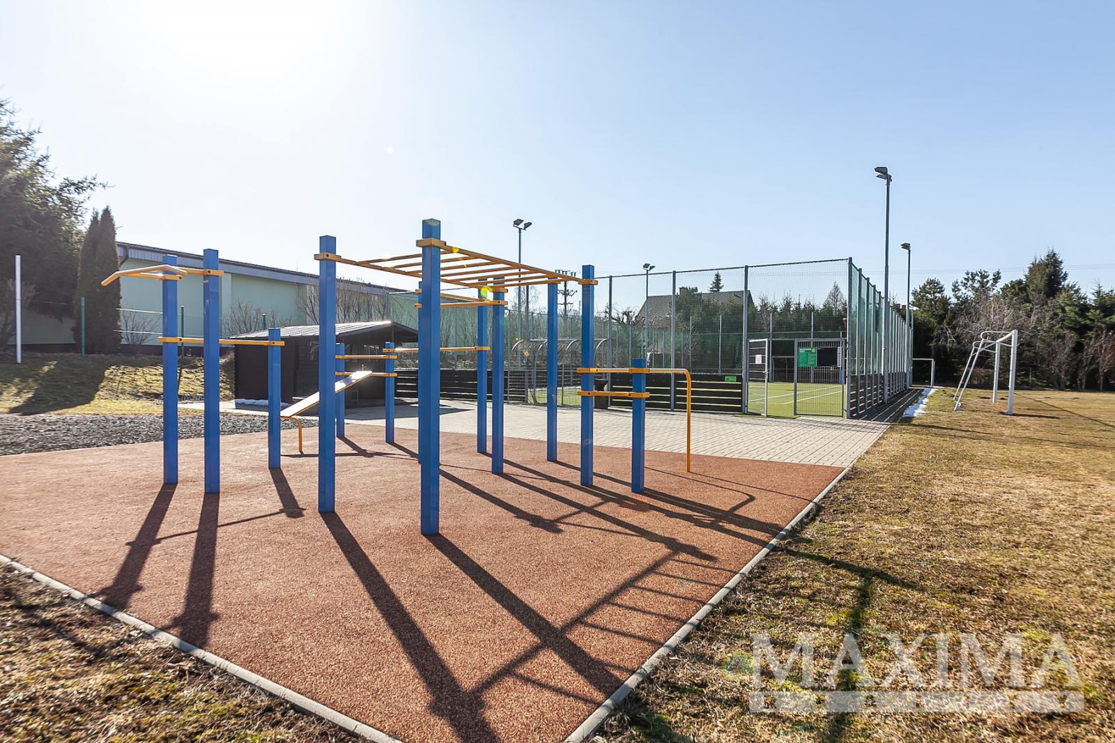 Prostorný obývací pokoj s kuchyňským koutem (41 m2), spíž (6,2 m2), ložnice (12,7 m2), pokoj (12,3 m2), pokoj (12,3 m2), koupelna (7 m2), WC (1,9 m2), technická místnost (9,9 m2), chodba (11,7 m2), zádveří (6,8 m2).