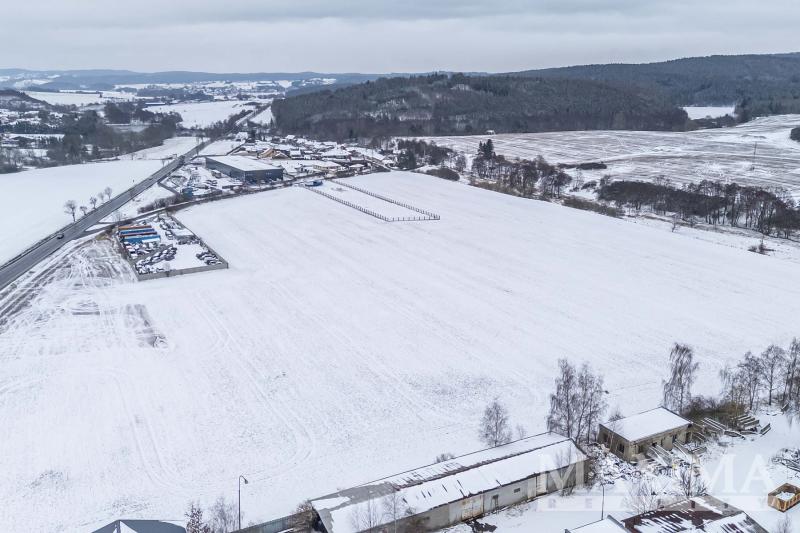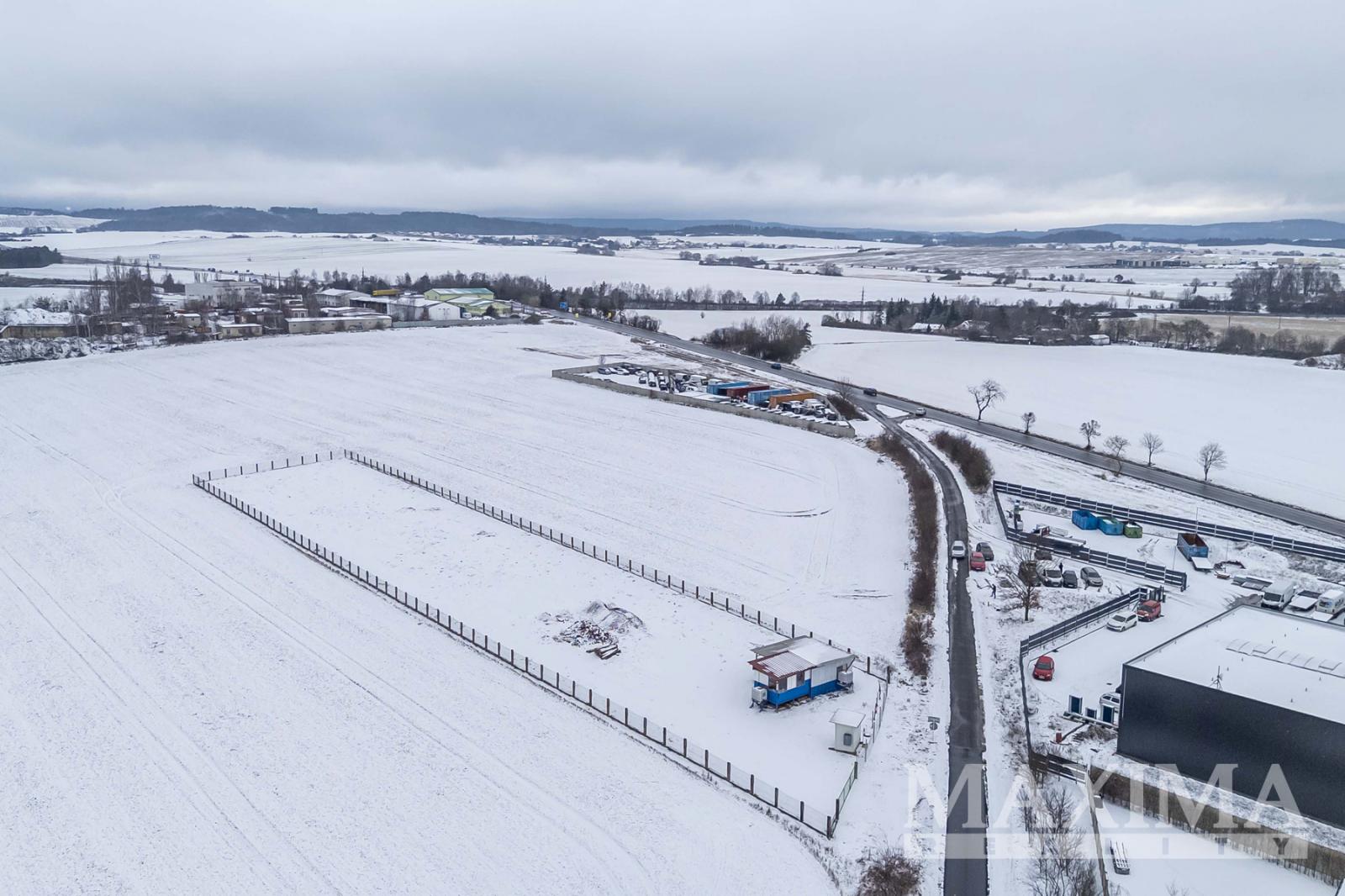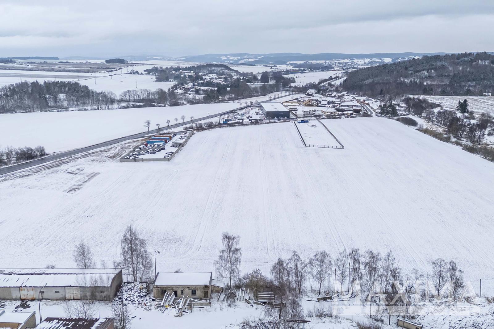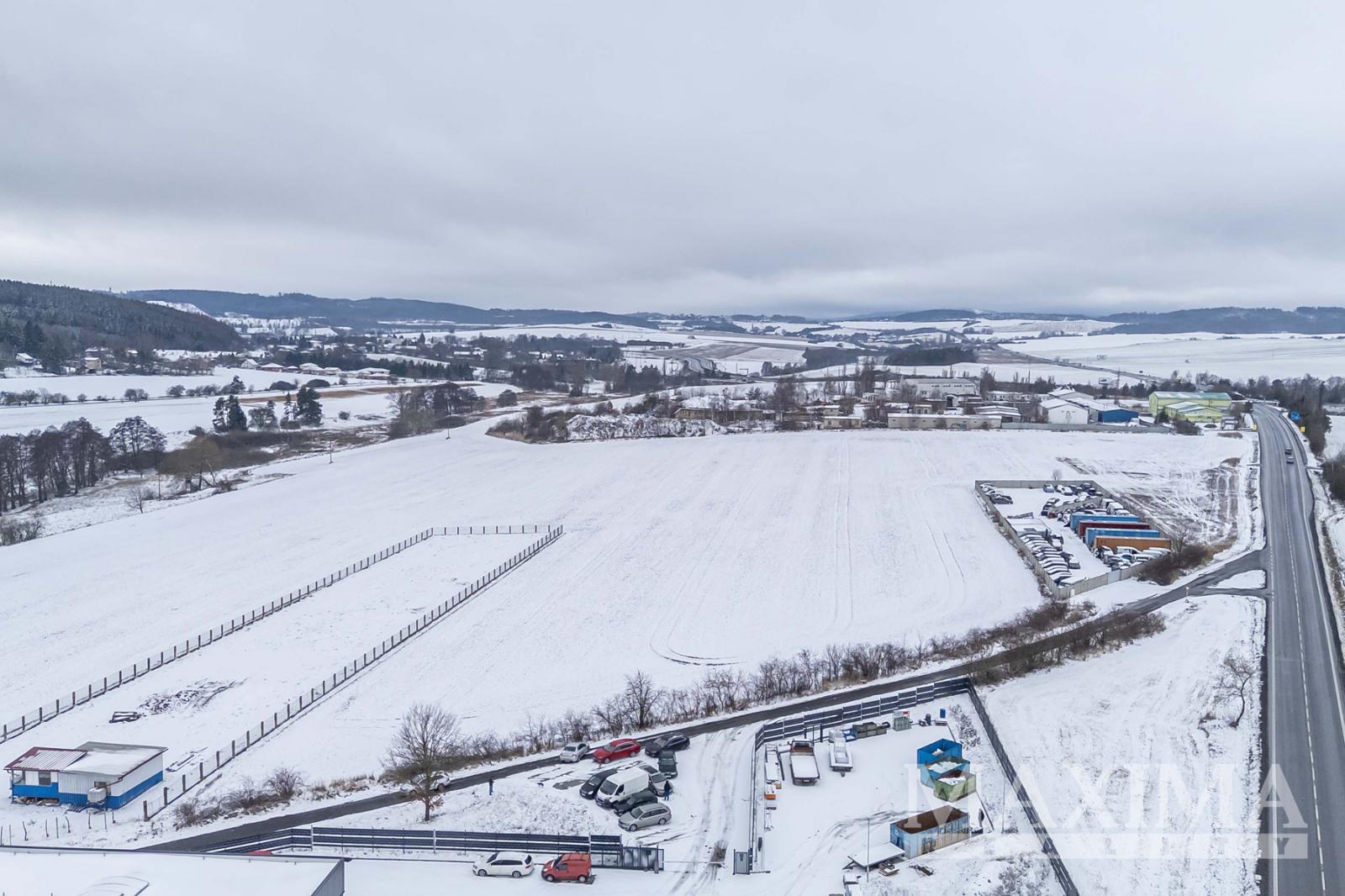 Pozemek 6.839 m2 pro průmyslovou výrobu, sklady, komerční občanskou vybavenost a služby umístěný u exitu 41 dálnice Praha - Příbram - České Budějovice, v sousedství města Příbram, v katastrálním území obce Drásov.