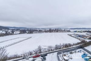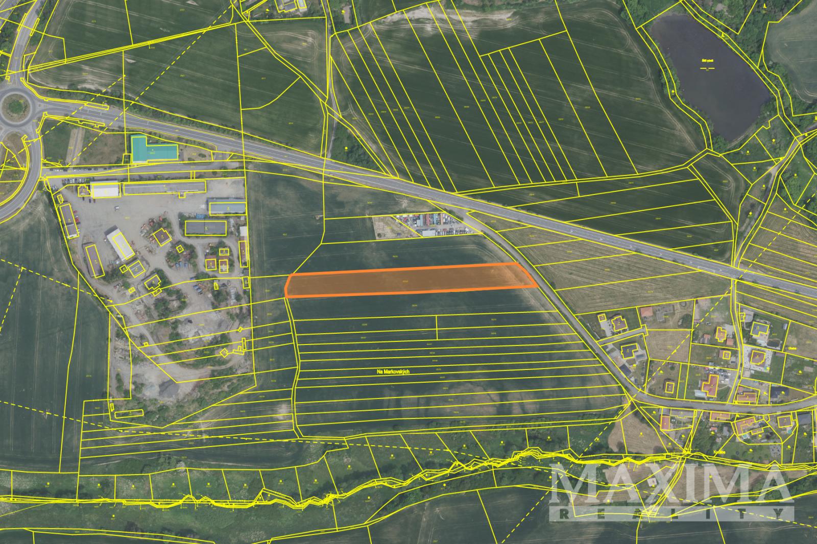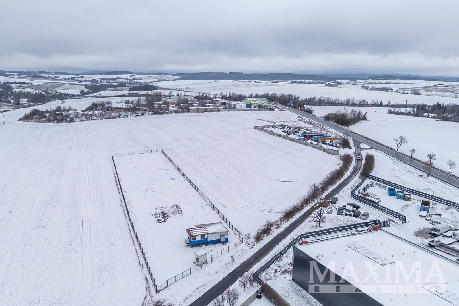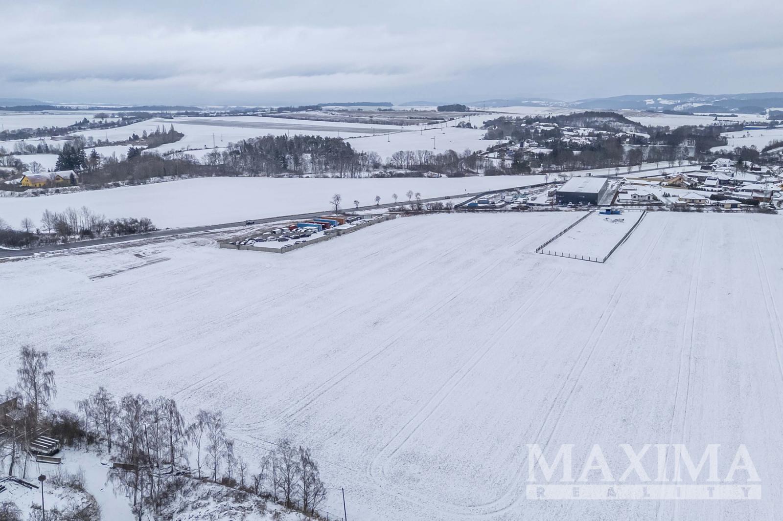 Pozemek 6.839 m2 pro průmyslovou výrobu, sklady, komerční občanskou vybavenost a služby umístěný u exitu 41 dálnice Praha - Příbram - České Budějovice, v sousedství města Příbram, v katastrálním území obce Drásov.