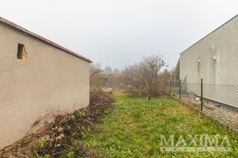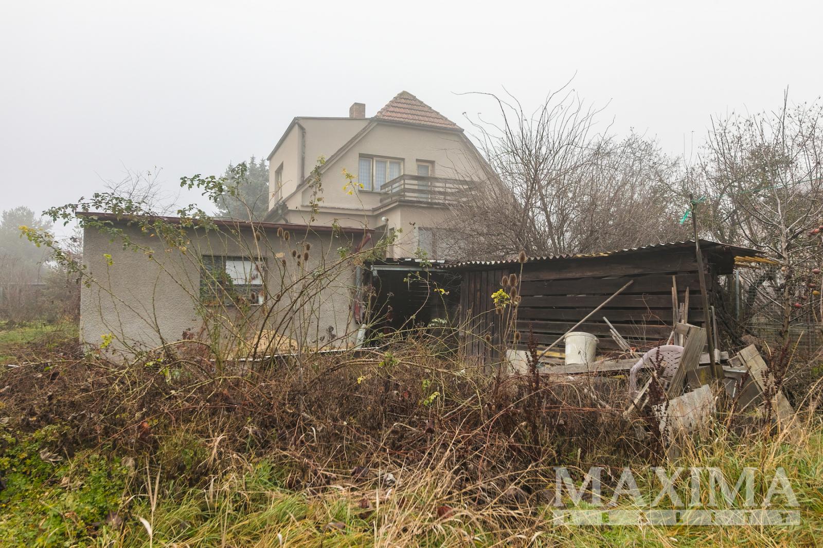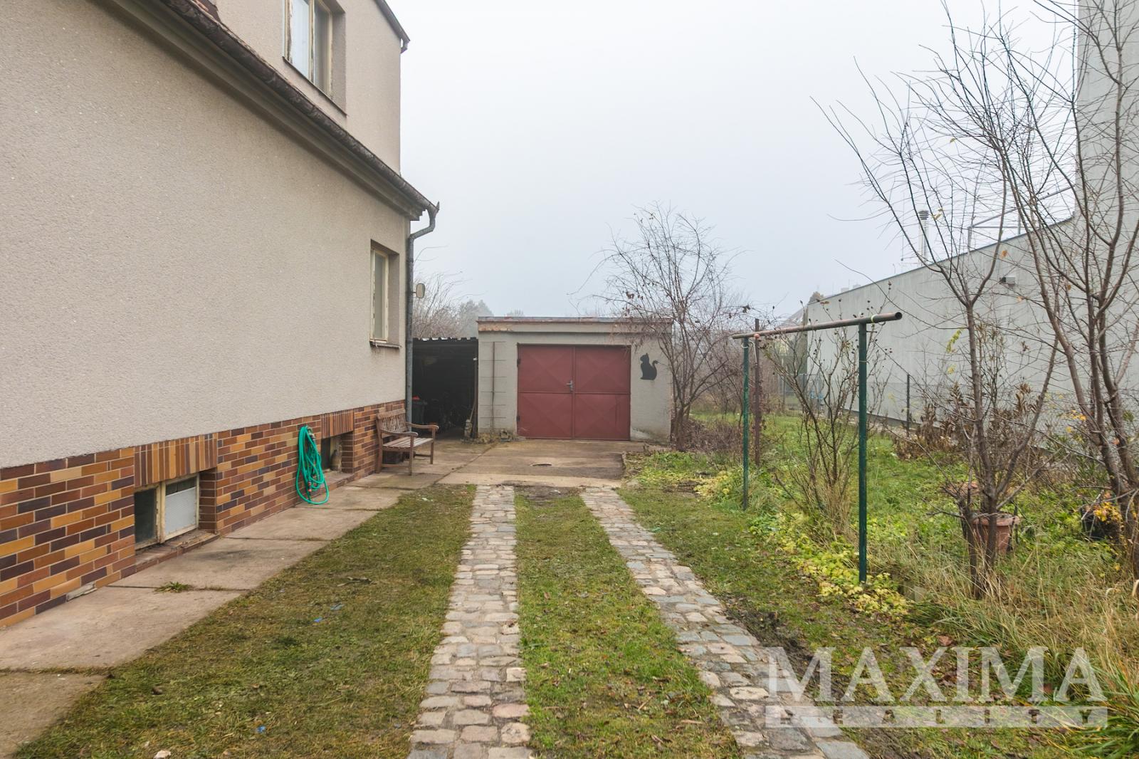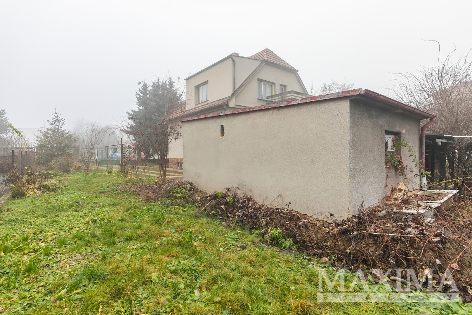 Samostatná garáž 24 m2 + parkování na vjezdu pozemku. Zděnný domek ke skladování.