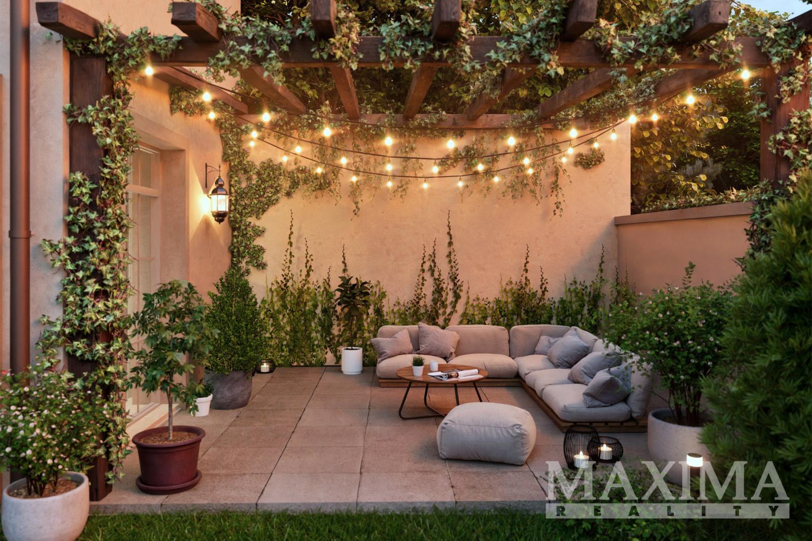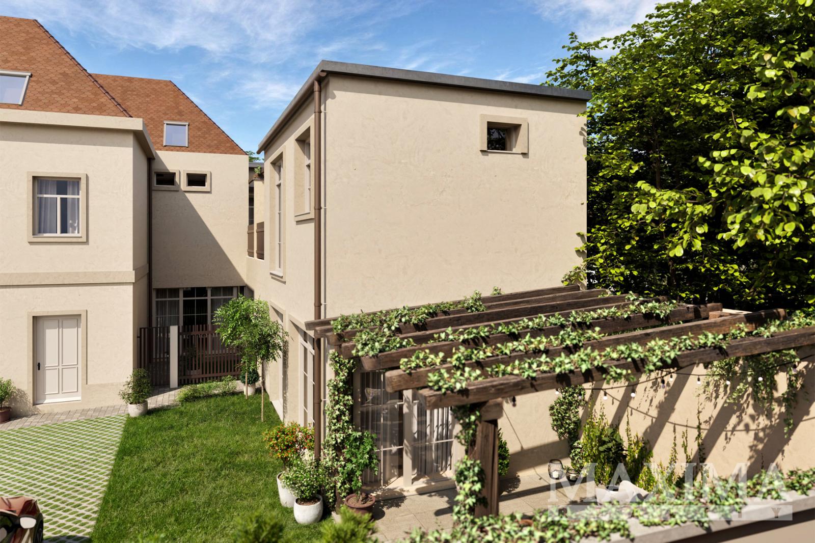 Bytová jednotka č. 1: mezonetový 2kk v 1. a 2. NP, přímý vstup na zahradu, plocha bytu 61,9 m2, terasa 17,3 m2.