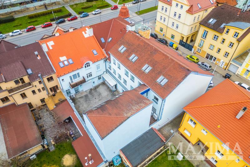Celková vnitřní plocha tedy činí 2.003,5 m2, z toho přibližně 1.845 m2 tvoří kancelářské plochy. Součástí nemovitosti je samostatná garáž ve dvoře objektu, přístupná rolovacími vraty. Vjezd do uzavřeného dvora je z ulice Čs. armády přes elektricky ovládaná vrata na dálkové ovládání.